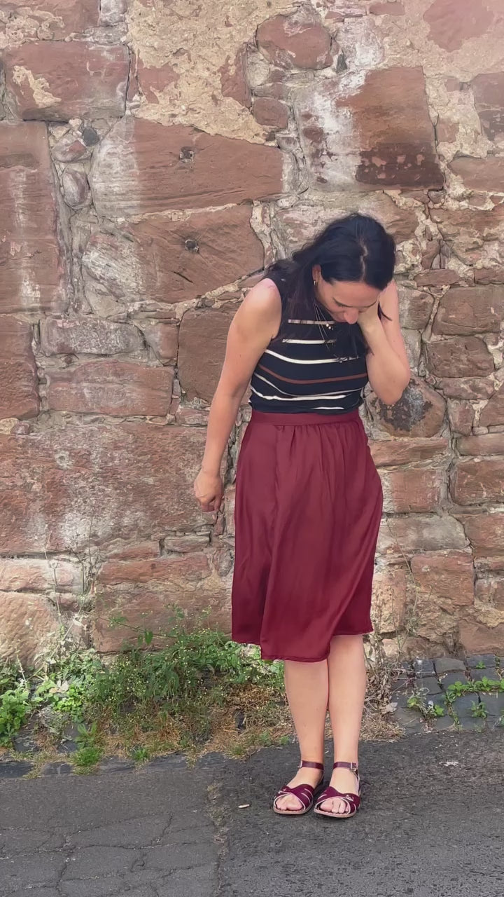 Leonie ist ein Rock mit klassischem Look. Wenn da nicht die Raffung am Vorderteil wäre!